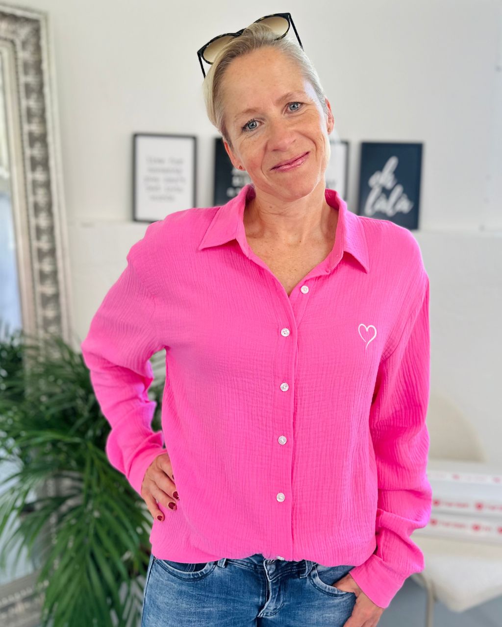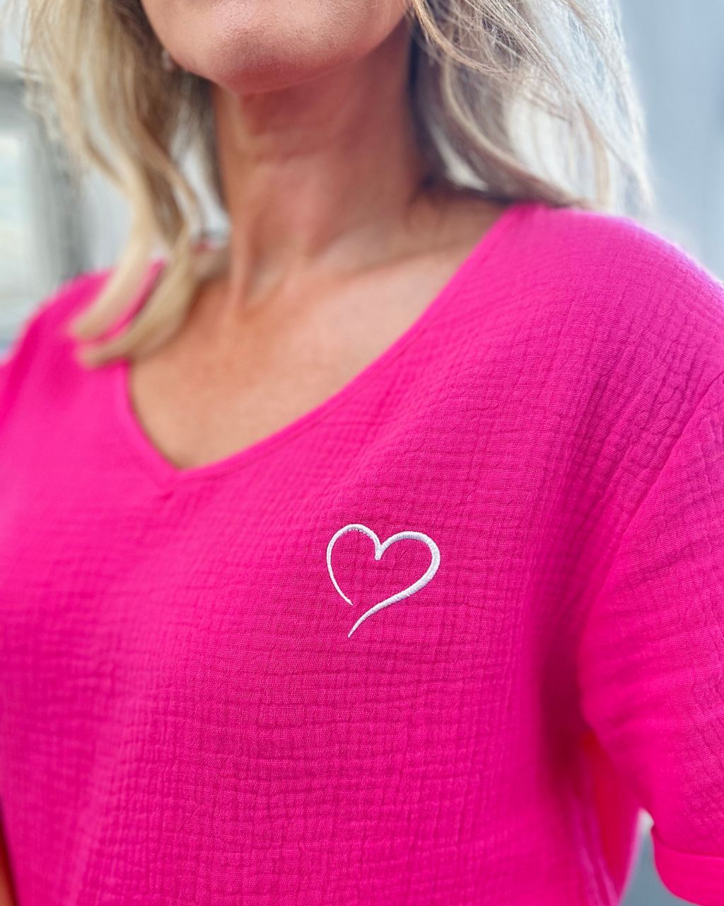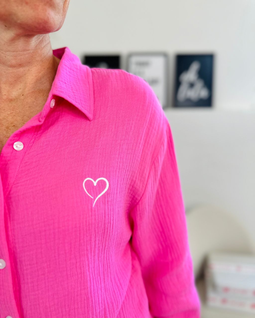 Regulärer Preis €45,00 Verkaufspreis €45,00Herzlein® Musselin Shirt mit "Herzchen-Stick" in Pink