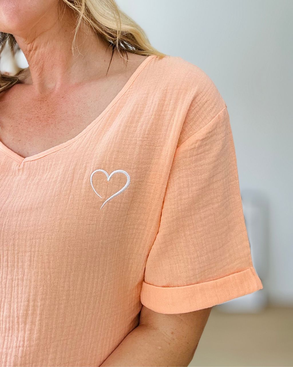 Regulärer Preis €34,95 Verkaufspreis €34,95Herzlein® Musselin Shirt mit "Herzchen-Stick" in Rosa