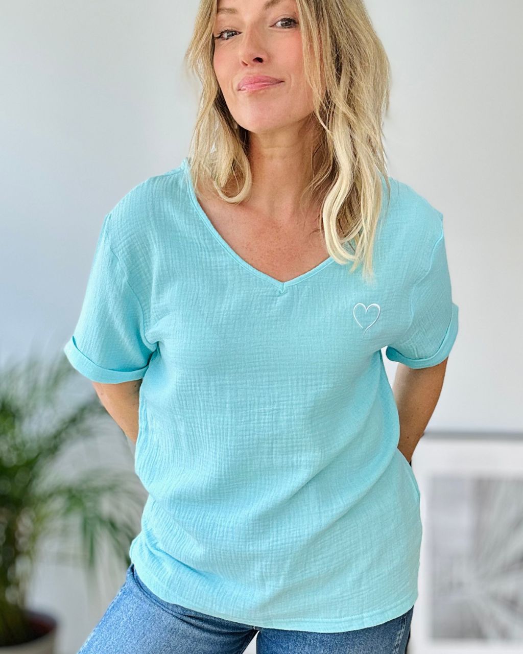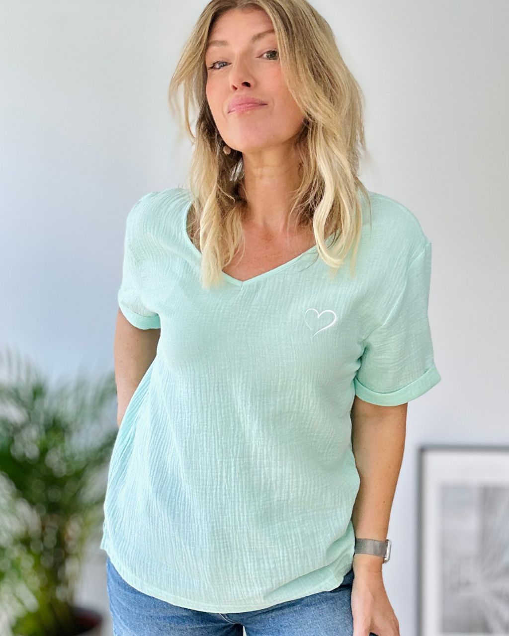 Regulärer Preis €34,95 Verkaufspreis €34,95Herzlein® Musselin Shirt in Haselnuss