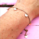 Filigranes Herzlein® Armbändchen aus Edelstahl in der Farbe Rosa-Gold, mit mehreren süßen kleinen Herzchen.