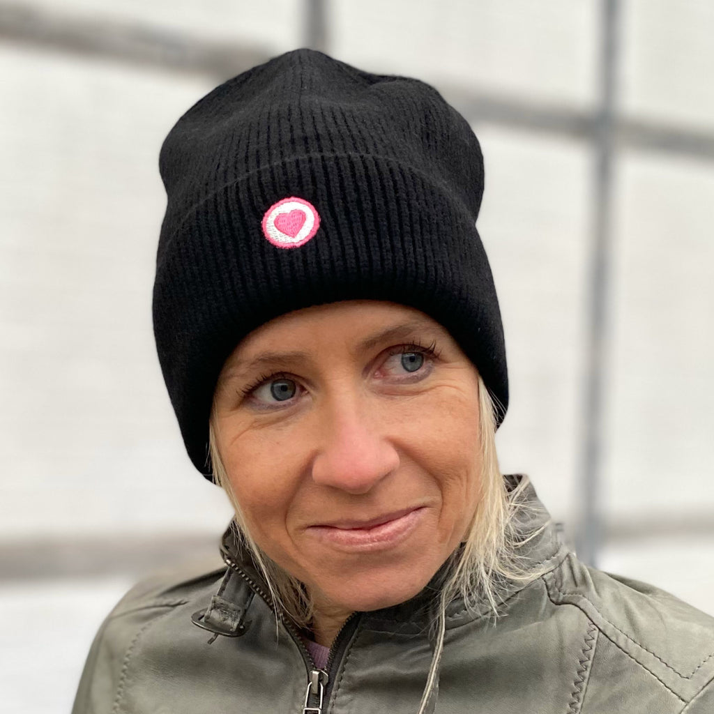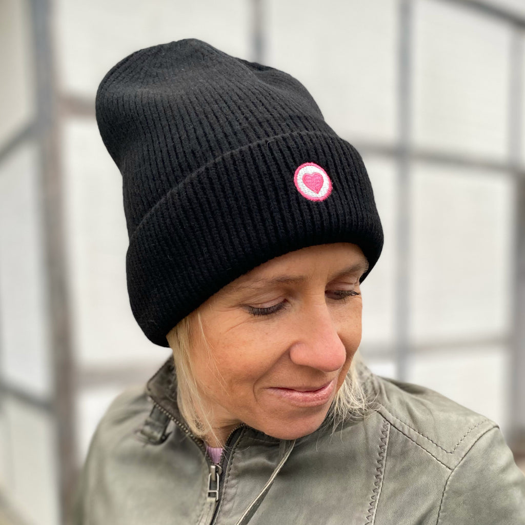 Herzlein® Kaschmir Mütze mit Umschlag in Schwarz
