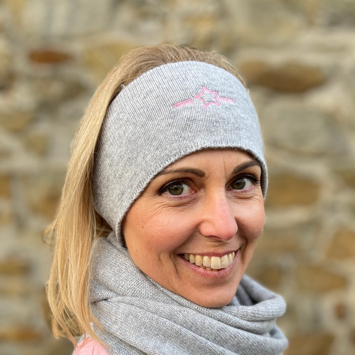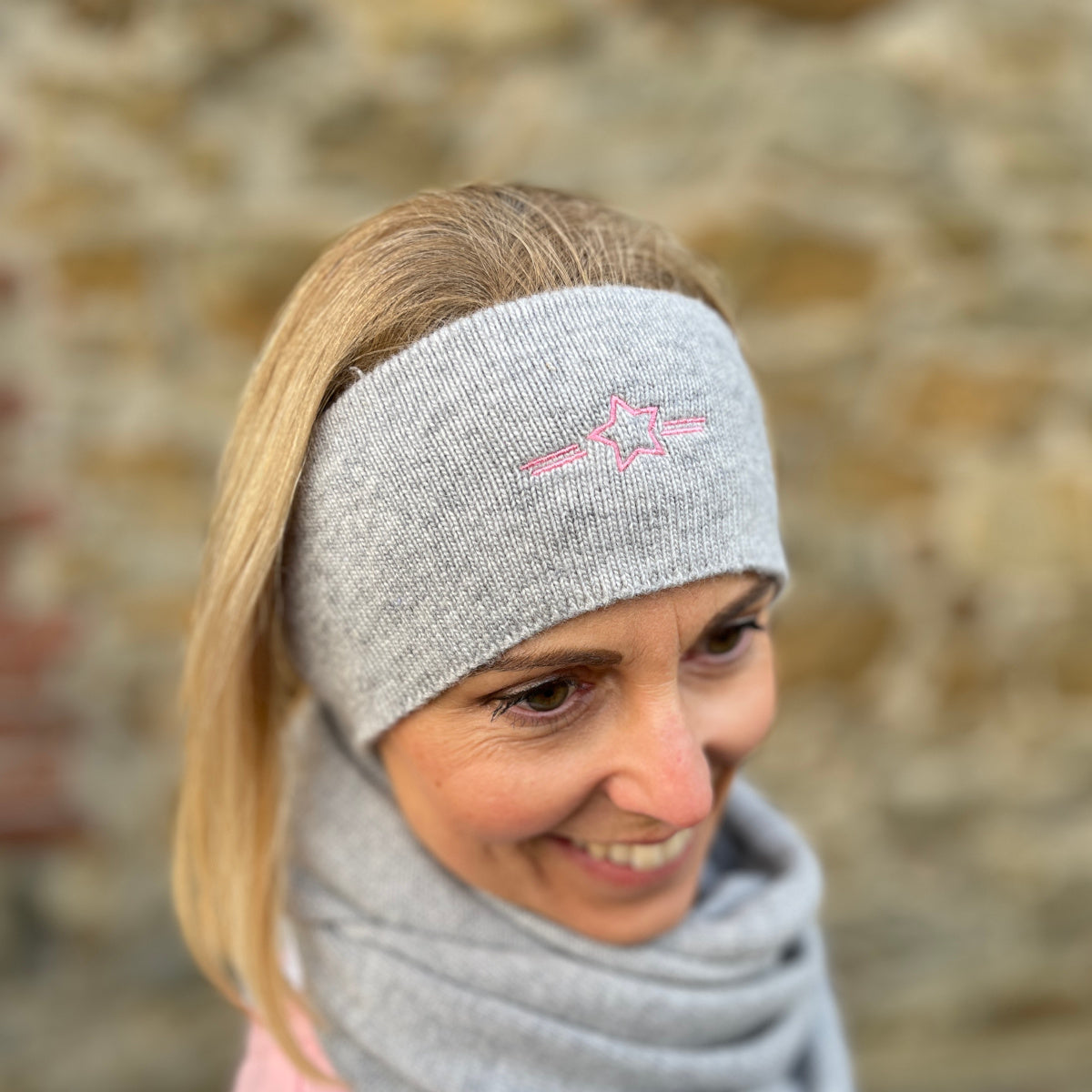 Herzlein® Kaschmir Stirnband "Stern" in Grau meliert