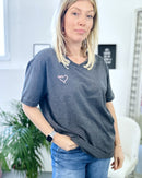 Sehr weiches und bequemes T-Shirt in der Farbe Dunkelgrau mit einem schönen Herzchen Stick auf der Brust und den Aufdruck "Love your Life" auf der Rückseite.
